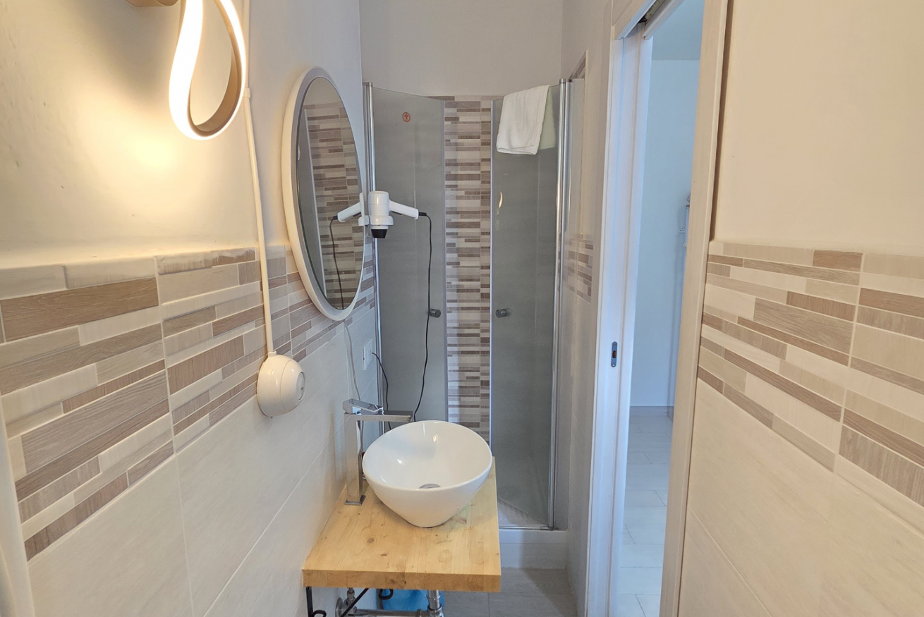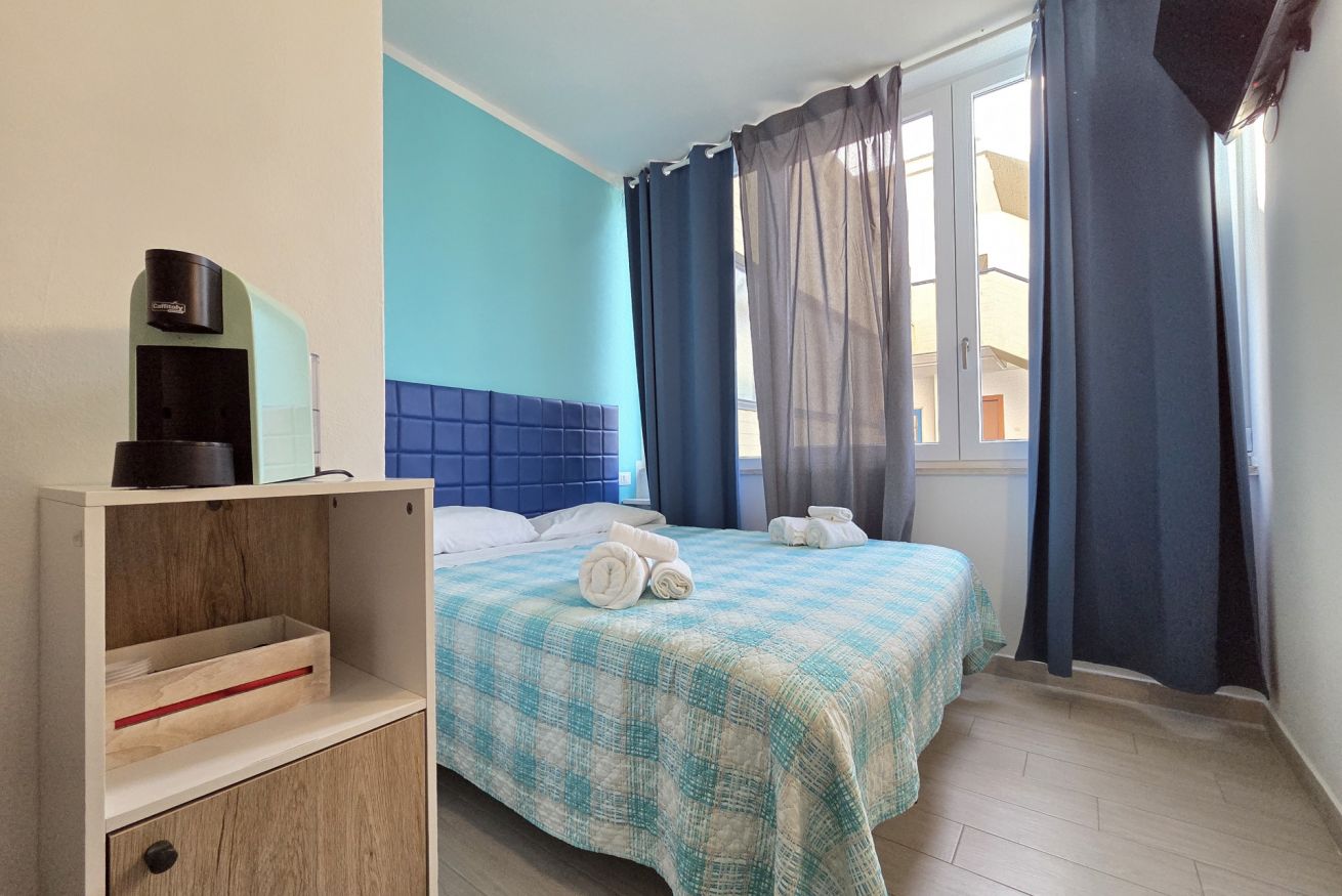 La 'Matrimoniale Basic' di 14 mq è cosi composta: camera con letto matrimoniale ed un bagno privato, completo e finestrato con cabina doccia.