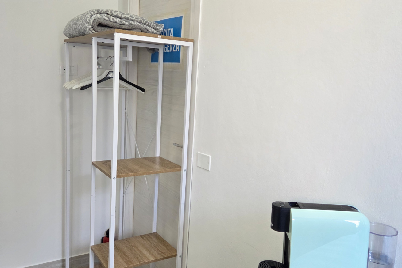 La nostra matrimoniale 'Nuvola' è dotata di: parcheggio, wifi, aria condizionata, riscaldamento, ventilatore, smart Tv, minibar, macchinetta del caffè, scrivania con sedia, armadio a vista con grucce, tende oscuranti, prima biancheria da letto e da bagno, asciugacapelli, specchio illuminato per trucco, pavimento in gres porcellanato ed estintore.